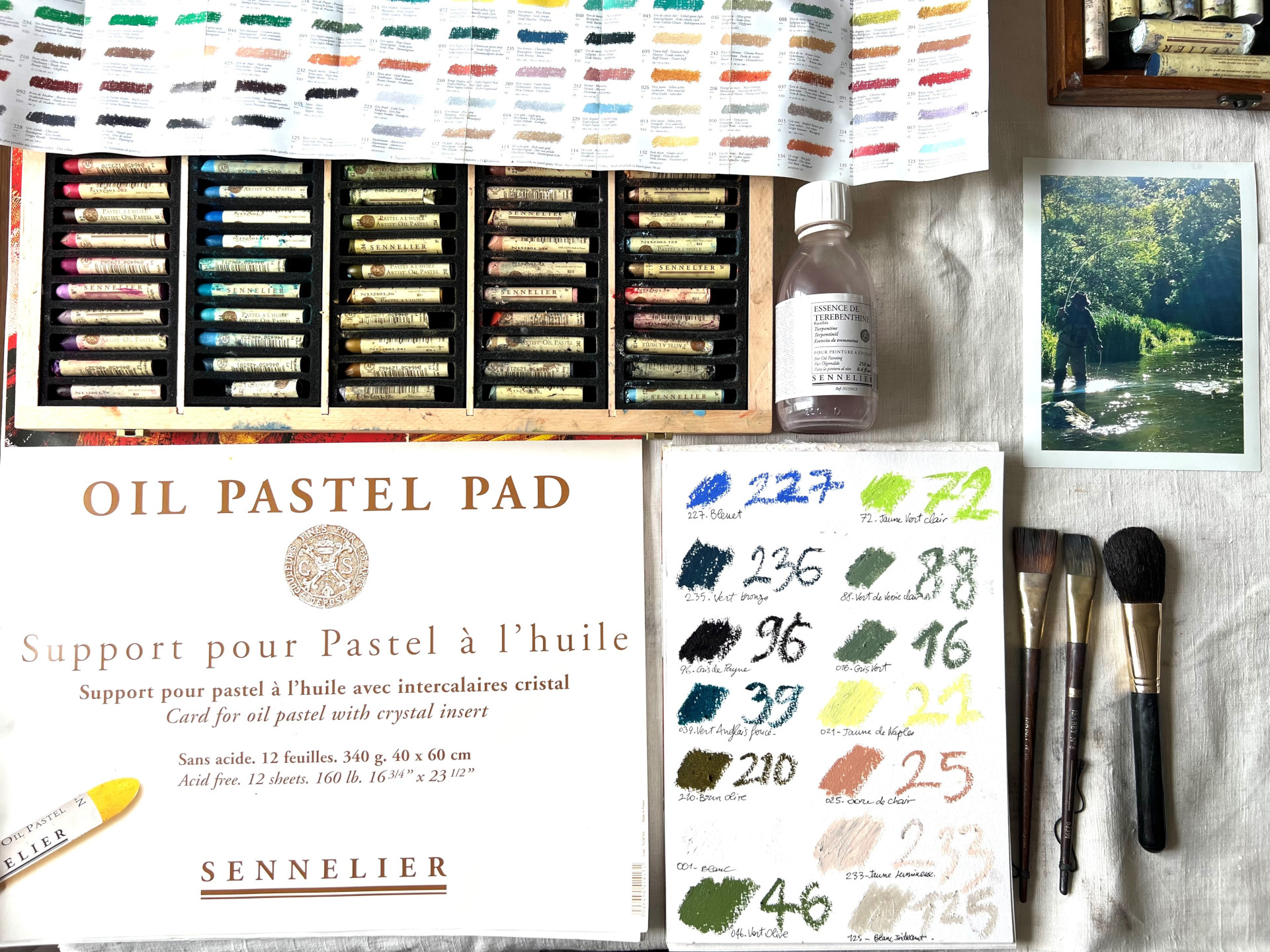 Xavier Kosmalski is a French multi-technique painter based in Sillé-le-Guillaume in Sarthe. Xavier will demonstrate oil pastels. He will show us how to dilute them with turpentine. Our subject will be this photo of this fly fisherman, another passion of Xavier.