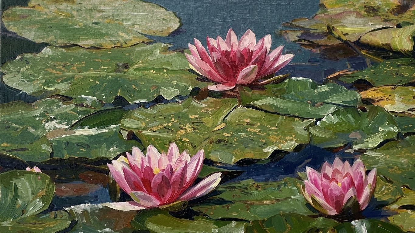 Inspiring step-by-step tutorial: https://colorsketch.art/how-to-paint/nymphéas-in-oil-painting-tutorial