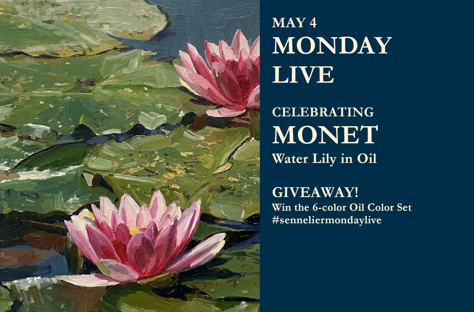 We're celebrating Monet and the launch of the Monet Heritage x Sennelier collection by creating water lilies using the 6 colors from the extra-fine oil paint set in this collection. Giveaway! Share your artwork in the shared album for a chance to win this oil paint set.