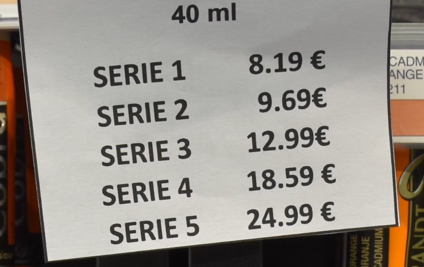 Only on extra-fine quality paints will you find a ‘serial’ number. It is crucial to understand that this number (Series 1, Series 2, Series 3, etc.) does not reflect the quality of the paint at all, but only the cost of the pigment used to make it.